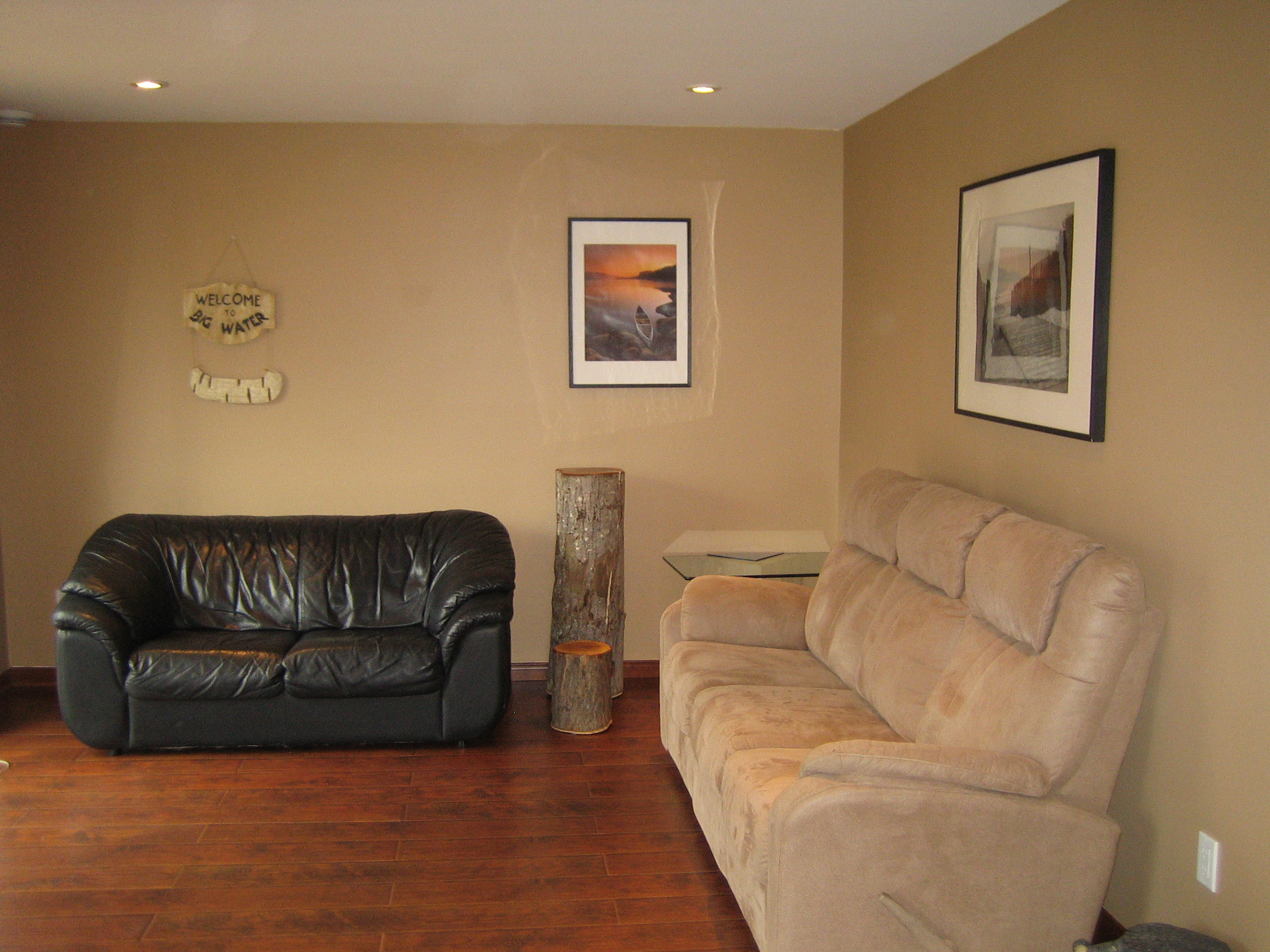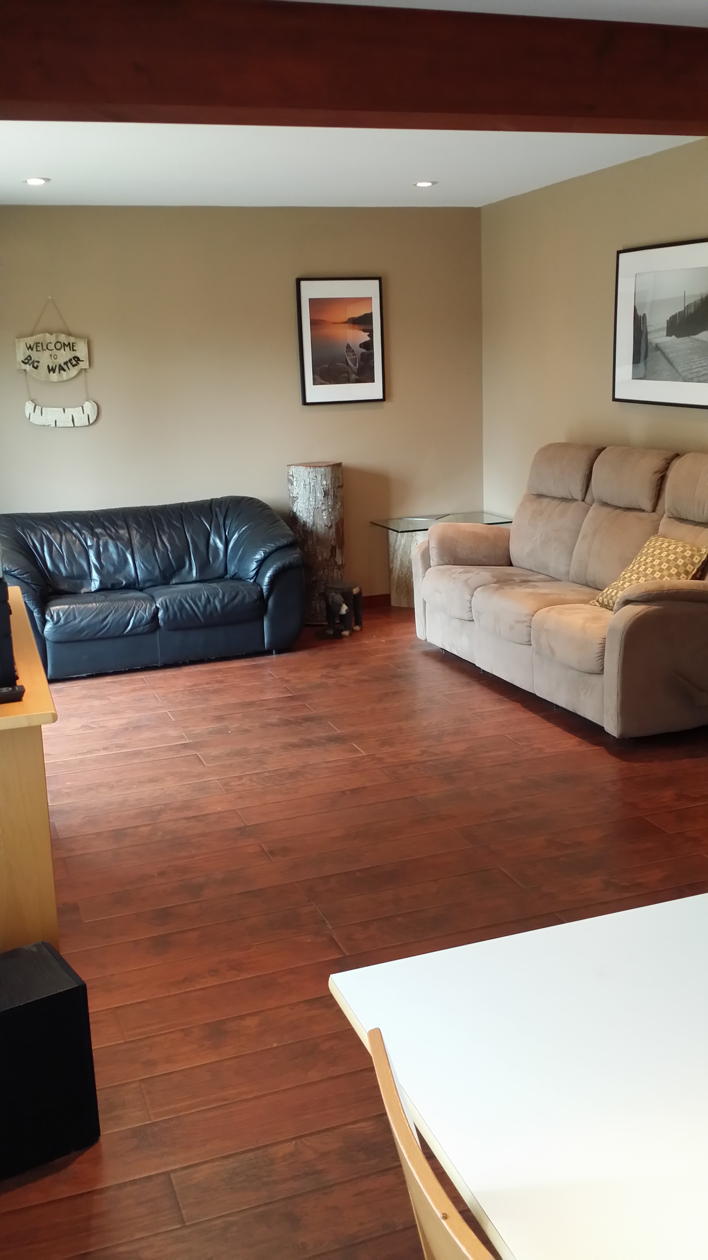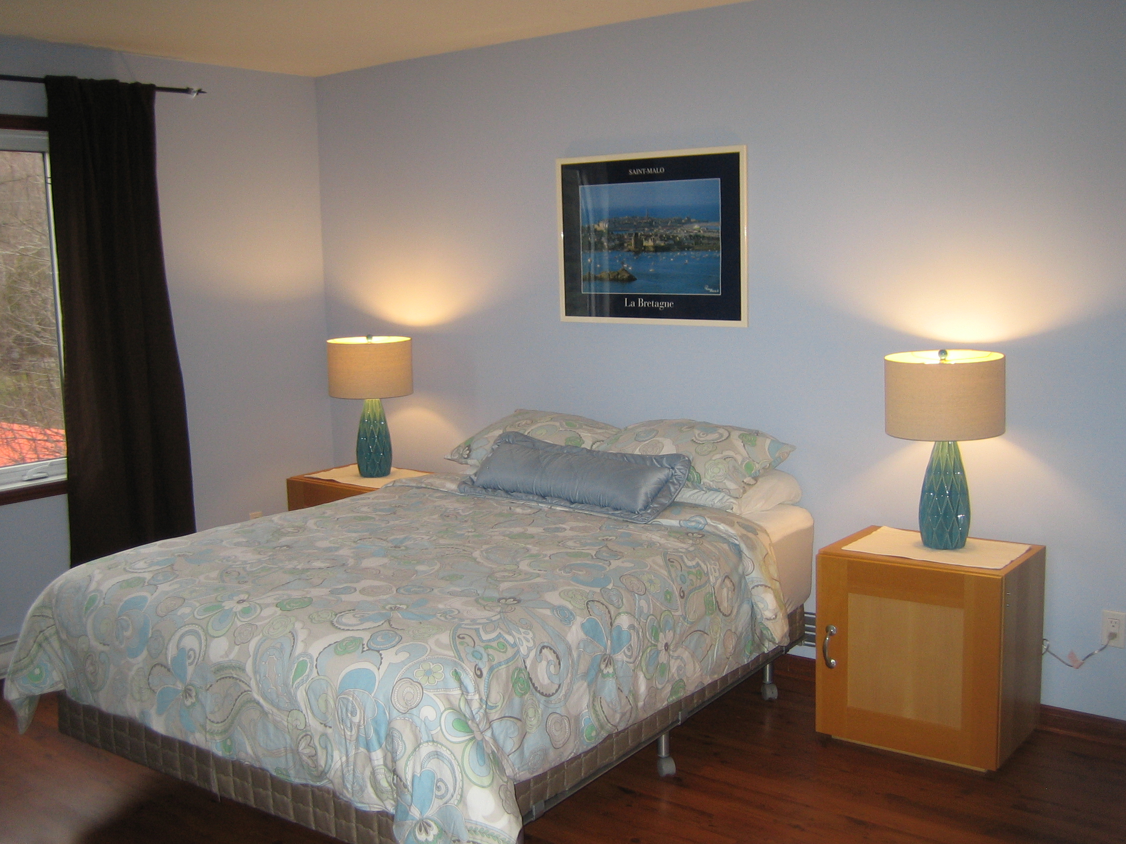 3 chambres à coucher : 2 chambres avec lits queen au rez-de-chaussée. 1 chambre avec lit double au sous-sol, une salle de séjour au sous-sol sorti du sol avec terrasse adjacente. 2 salles de bain complètes.